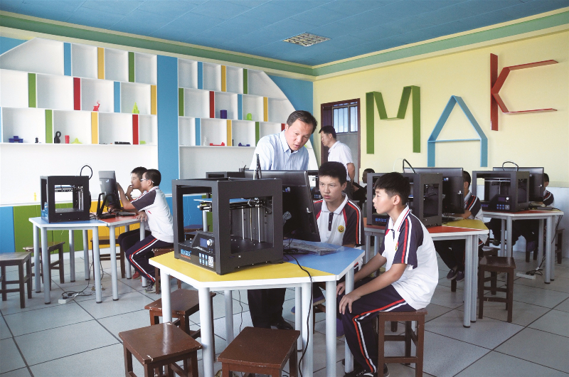 目前,“3D飛天創(chuàng)客空間”正式建成并投入使用。學(xué)生通過(guò)專業(yè)的中小學(xué)建模軟件,自己動(dòng)手設(shè)計(jì)3D模型,運(yùn)用3D打印機(jī)打印出茶杯、筆筒等實(shí)物,讓學(xué)生的想象變?yōu)楝F(xiàn)實(shí)。此外,在歷史、生物、地理、化學(xué)、物理等課程的教學(xué)中,輔助教具都可以通過(guò)3D打印制作出來(lái),將抽象、難懂的教學(xué)變得直觀形象化,更好地激發(fā)學(xué)生的學(xué)習(xí)興趣。